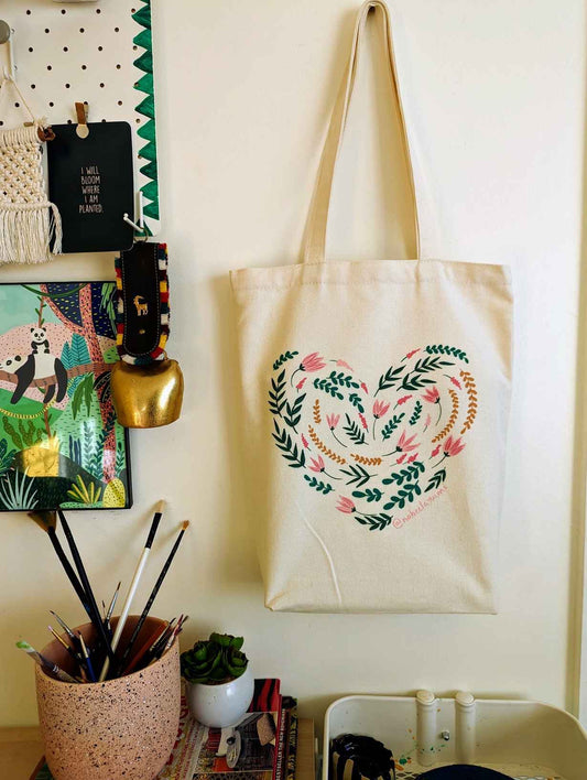 Floral Heart Tote Bag
